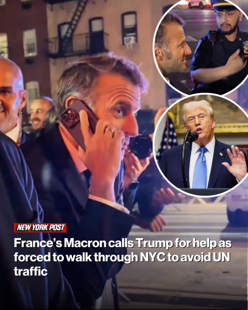 French leader Emmanuel Macron got an authentic New York experience when his car was blocked by UN traffic — with the head of state filmed getting out to walk and even calling President Trump for help.