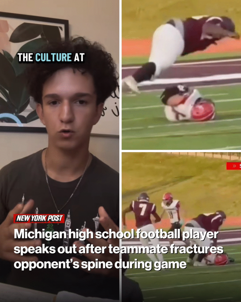 A Michigan high school football player publicly denounced his teammate’s “horrible decision” to leap onto an opponent — fracturing the student’s spine — and revealed that his school and coaches are being bombarded with racially charged threats.