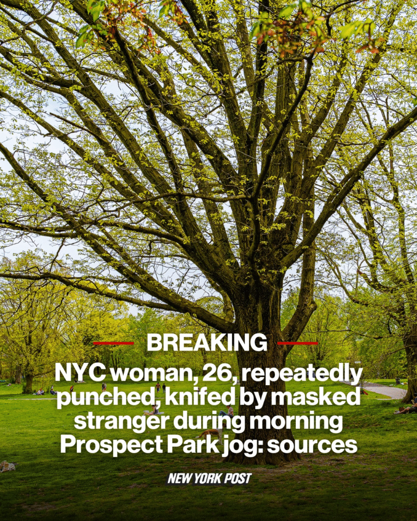 A masked stranger repeatedly punched and stabbed a 26-year-old woman in the back in an unprovoked attack inside Brooklyn’s Prospect Park last week, police sources said.