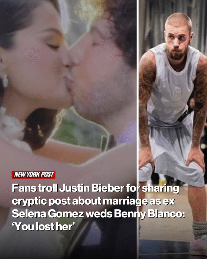 Justin Bieber was trolled by fans for sharing a post set to a song about marriage hours after his ex Selena Gomez married Benny Blanco.
