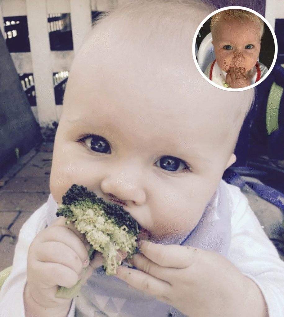 For breakfast, Grace typically has eggs fried in coconut oil with roasted veggies like sweet potato, carrots, potatoes, and steamed broccoli, a quarter of an avocado, and a small scoop of sauerkraut. Lunch consists of something like organic roasted chicken and roasted and steamed vegetables like broccoli. Grace snacks on fruit throughout the day, strawberries and bananas being her favorite.