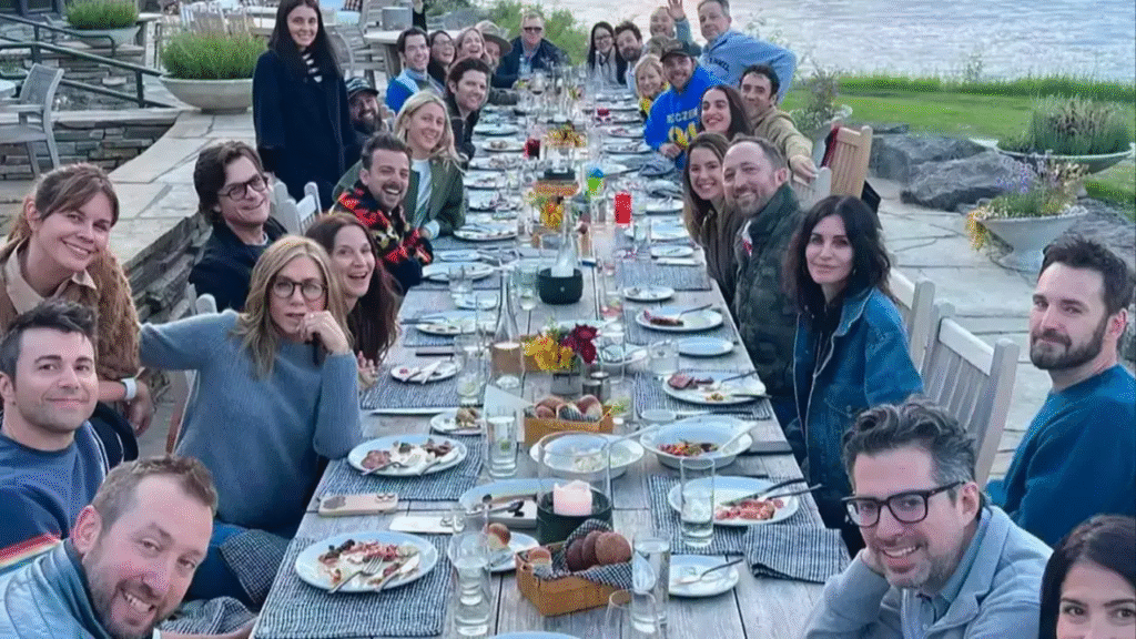 For instance, Friends stars Jennifer Aniston and Courteney Cox are seated opposite each other.