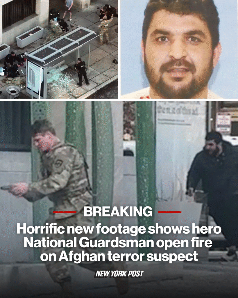 Disturbing new footage shows the moment a hero National Guard member opened fire on the suspected Afghan terrorist — just moments after the alleged gunman ambushed two troops in a broad daylight attack.