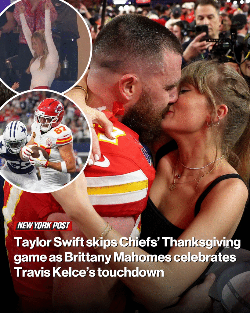 Taylor Swift skips Chiefs’ Thanksgiving game as Brittany Mahomes celebrates Travis Kelce’s touchdown