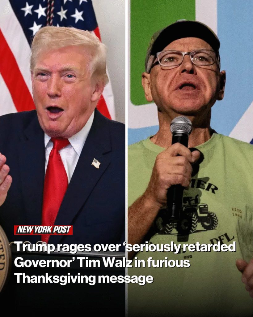 President Trump ripped Minnesota Gov. Tim Walz as “seriously retarded” — and suggested Rep. Ilhan Omar “probably came into the USA illegally” —  in a rage-filled Thanksgiving message about immigration.